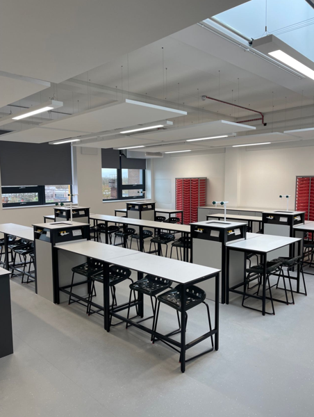 MID designed and supplied a complete scheme featuring SPACE-2X lighting rafts integrated with Tridonic’s wireless controls and PIR detectors. Each seven-metre raft requires only four fixings, simplifying installation. Classroom luminaires were specified with micro-prismatic diffusers and daylight harvesting modules, all commissioned via the wireless app to dim automatically when ample daylight is available. This ensures optimal visual comfort while avoiding unnecessary energy consumption.